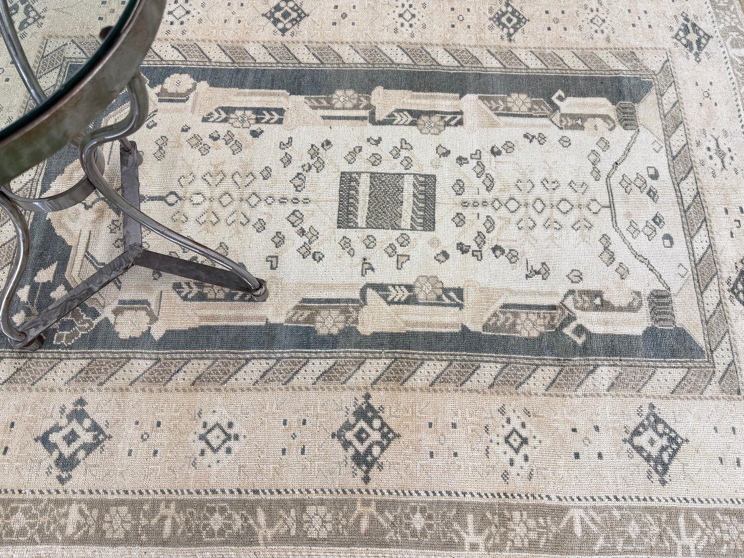 At 4’4″ x 6’0″, this versatile rug works beautifully in living rooms, bedrooms, entryways, or offices. While traditional in origin, its neutral palette and softened aesthetic make it ideal for modern farmhouse, coastal, Scandinavian, transitional, or contemporary settings. The prayer design also makes it a meaningful piece for collectors of Islamic art.